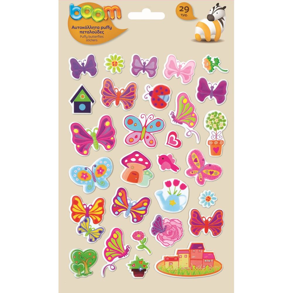 Αυτοκόλλητα puffy πεταλούδες Boom. Η συσκευασία περιέχει 29 αυτοκόλλητα! Οι πιο φανταχτερές πεταλούδες για να διακοσμήσεις βιβλία, τετράδια και ό,τι άλλο μπορείς να φανταστείς!