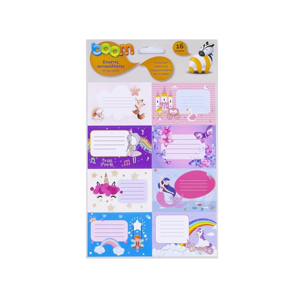 Ετικέτες αυτοκόλλητες Boom. Η συσκευασία περιέχει 16 τεμάχια. Οι πιο cool ετικέτες για ξεχωριστά βιβλία και τετράδια!