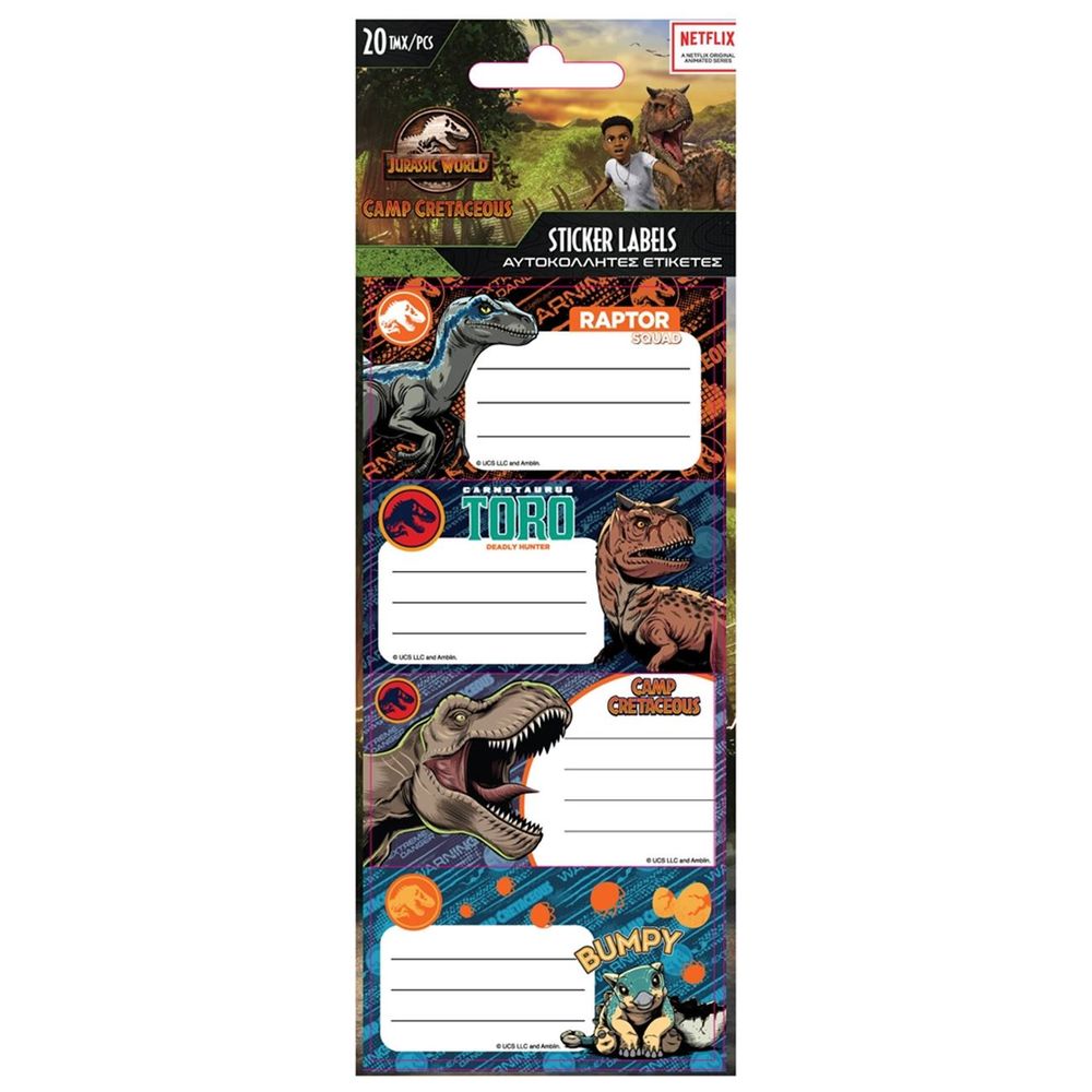 Αυτοκόλλητες Ετικέτες Jurassic World που διατίθενται σε 5 υπέροχα σχέδια και είναι ιδανικές για να διακοσμούν σχολικά είδη όπως, σχολική τσάντα πλάτης, τρόλεϊ, κασετίνα, βιβλία, τετράδια και φακέλους.