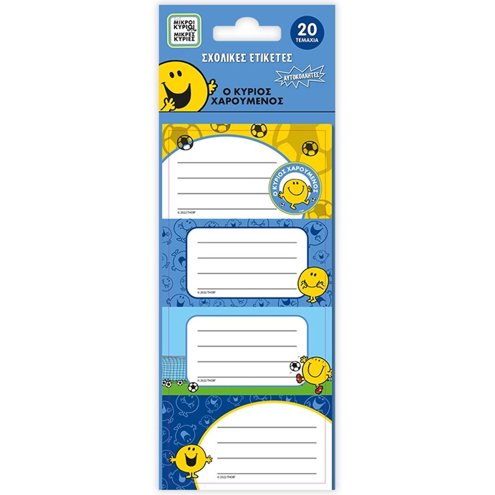 Αυτοκόλλητες ετικέτες Μ.Κ. Χαρούμενος, για να ταξινομήσεις με τον πιο εύκολο και απλό τρόπο τα τετράδια σου ή τα βιβλία σου ανα θέμα, καθώς και για να τα διακοσμήσεις.