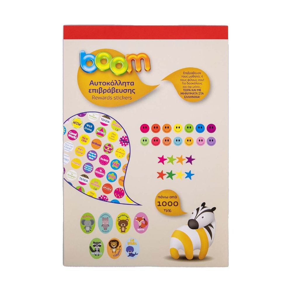 Αυτοκόλλητα επιβράβευσης σε μπλοκ Boom στα ελληνικά και στα αγγλικά. Κατάλληλα για να επιβραβεύσεις τους μαθητές ή τους φίλους σου.