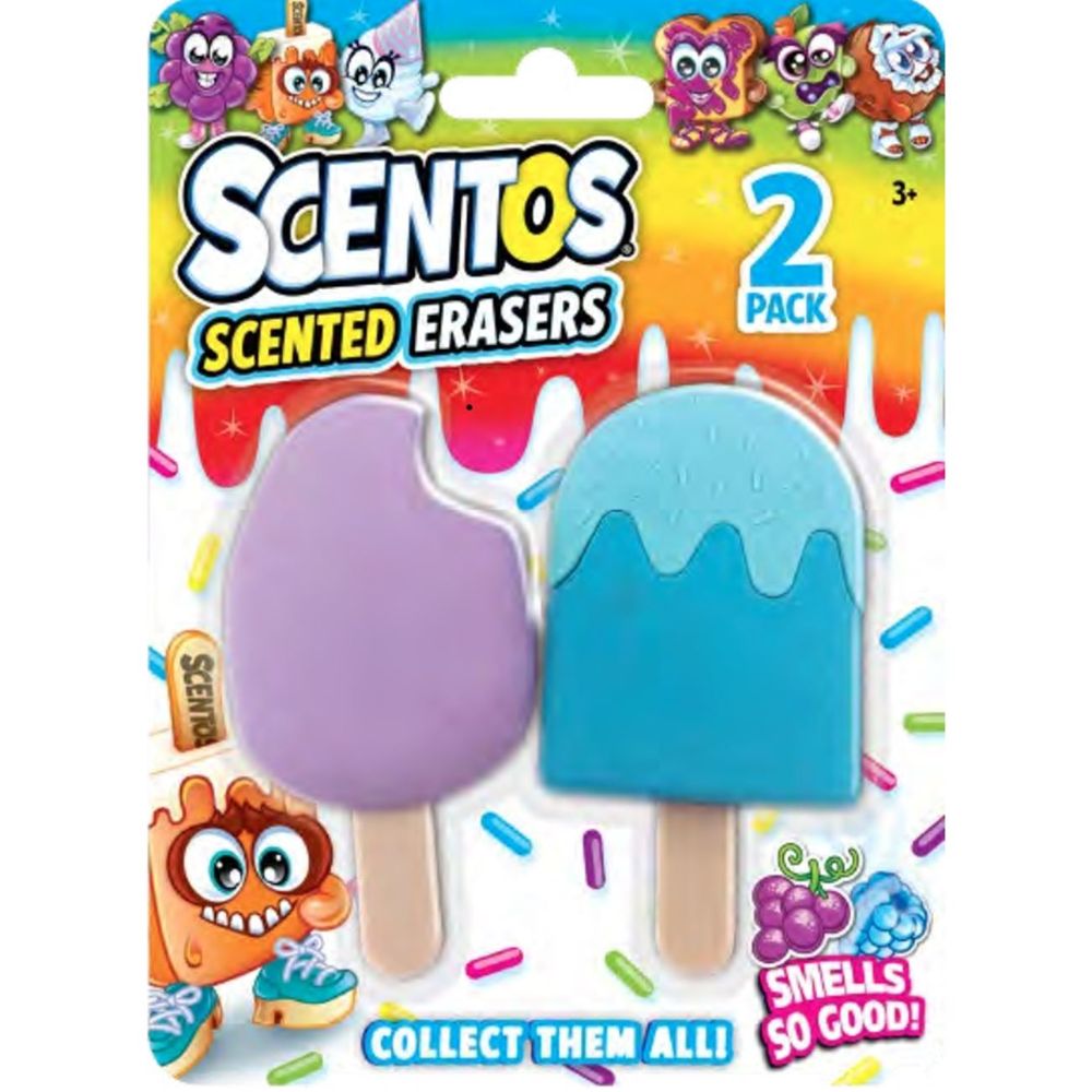 Αρωματικές γόμες που κάνουν το σβήσιμο παιχνιδάκι! Η συσκευασία περιλαμβάνει 2 τεμάχια.