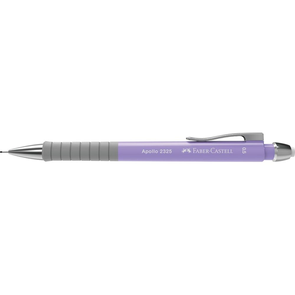 Μηχανικό μολύβι Faber Castell Apollo 0.5 mm με εργονομικό σχεδιασμό από πλαστικό υλικό. Διαθέτει πλήρως αποσυρώμενο κώνο μύτης για ασφαλή μεταφορά και ενσωματωμένη γόμα. Απολαύσε άνετη και ξεκούραστη γραφή με προστασία της μύτης από σπασίματα.
