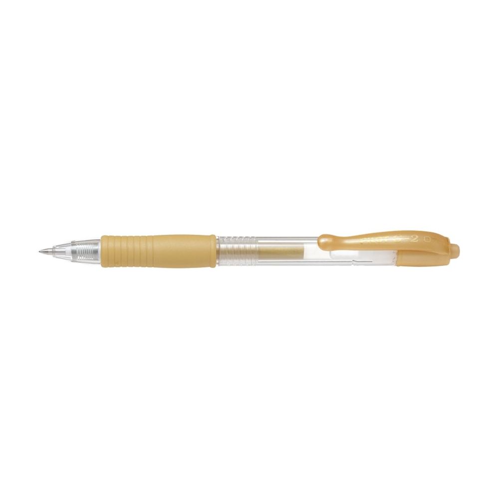 Το στυλό Pilot G-2 με πάχος μύτης 0.7mm προσφέρει άψογη ροή μελανιού και εξαιρετικά απαλό γράψιμο. Με την εργονομική του λαβή και το μελάνι gel σε χρυσή απόχρωση, αποτελεί την ιδανική επιλογή για να προσθέσεις μια πινελιά πολυτέλειας στο καθημερινό σου γράψιμο.