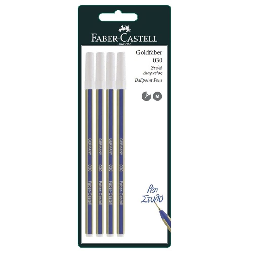 Σετ FC Gold Faber-Castell που περιλαμβάνει 4 στυλό διαρκείας σε μπλε χρώμα. Με εργονομικό εξαγωνικό κορμό και καπάκι είναι ιδανικό για καθημερινή χρήση, προσφέροντας άνετο γράψιμο και σταθερή ροή μελανιού.