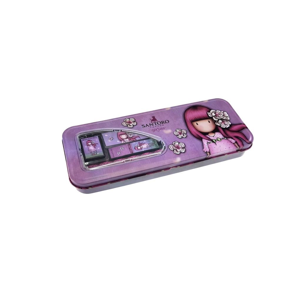 Μεταλλική κασετίνα 2 θέσεων. Περιέχει: 2 μολύβια,1 ξύστρα, 1 χάρακας, 1 γόμα
