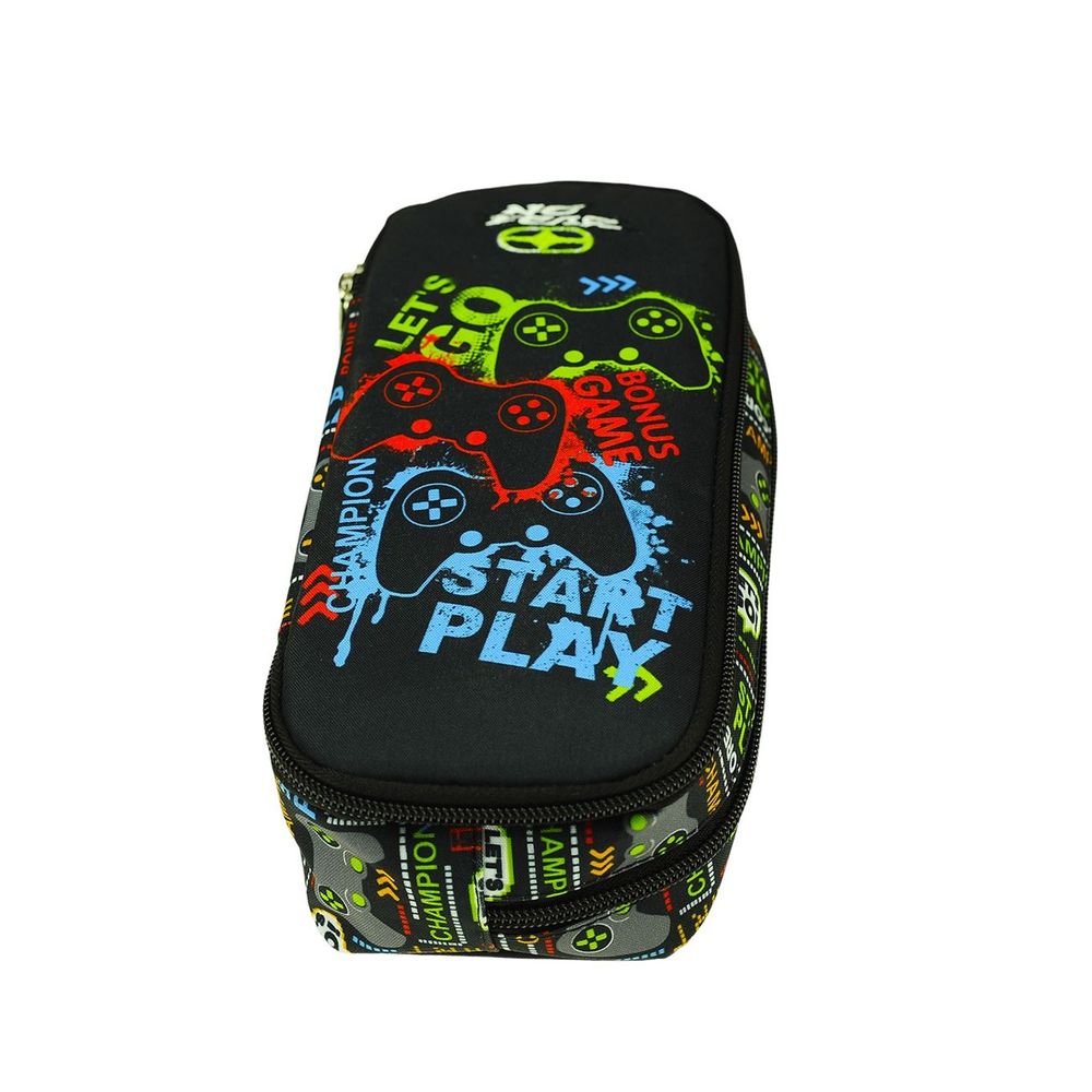 Μαύρη κασετίνα με όμορφο σχέδιο Video Game για να ξεχωρίζεις μέσα στην τάξη. Διαθέτει μία κεντρική θήκη με επιπλέον μπροστινή θέση οργάνωσης κι επένδυση με φόδρα.