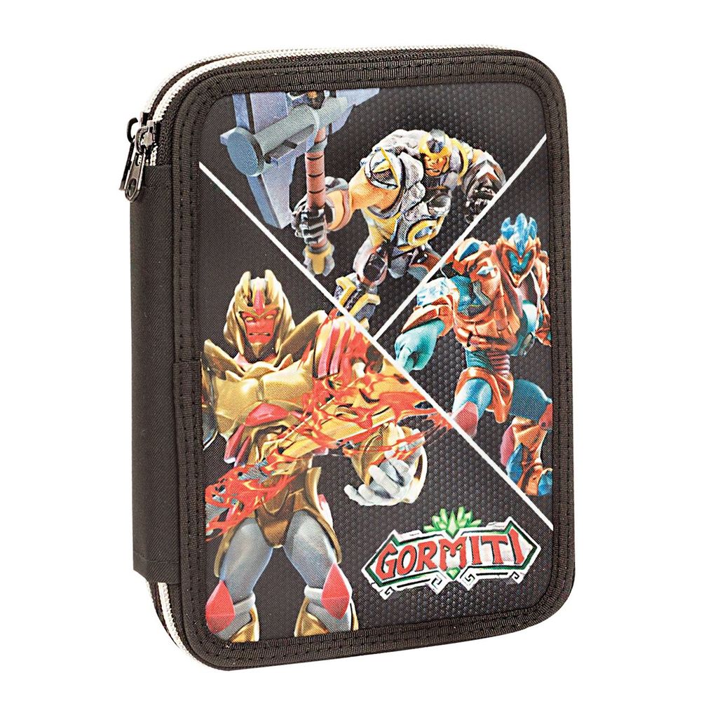 Διπλή κασετίνα Gim με 2 θήκες και μοντέρνο σχέδιο Gormitti, που περιέχει στυλό, μολύβι, γόμα, ξύστρα, χάρακα, εβδομαδιαίο πρόγραμμα, ξυλομπογιές και μαρκαδόρους.