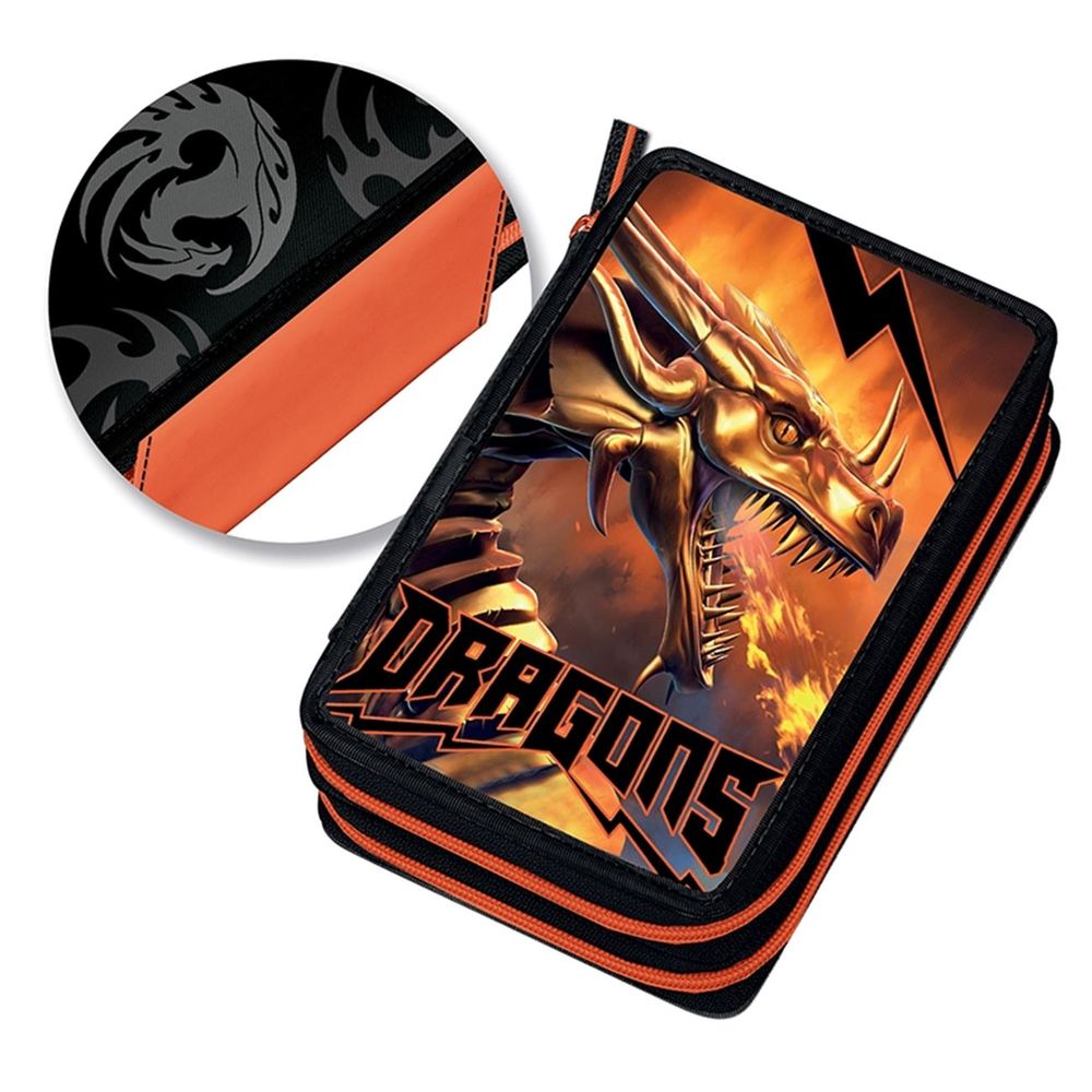 Διπλή κασετίνα γεμάτη που περιέχει χάρακα, 5 μολύβια, στυλό, γόμα, ξύστρα, 10 μαρκαδόρους και 10 ξυλομπογιές, ενώ διαθέτει 2 θήκες.
