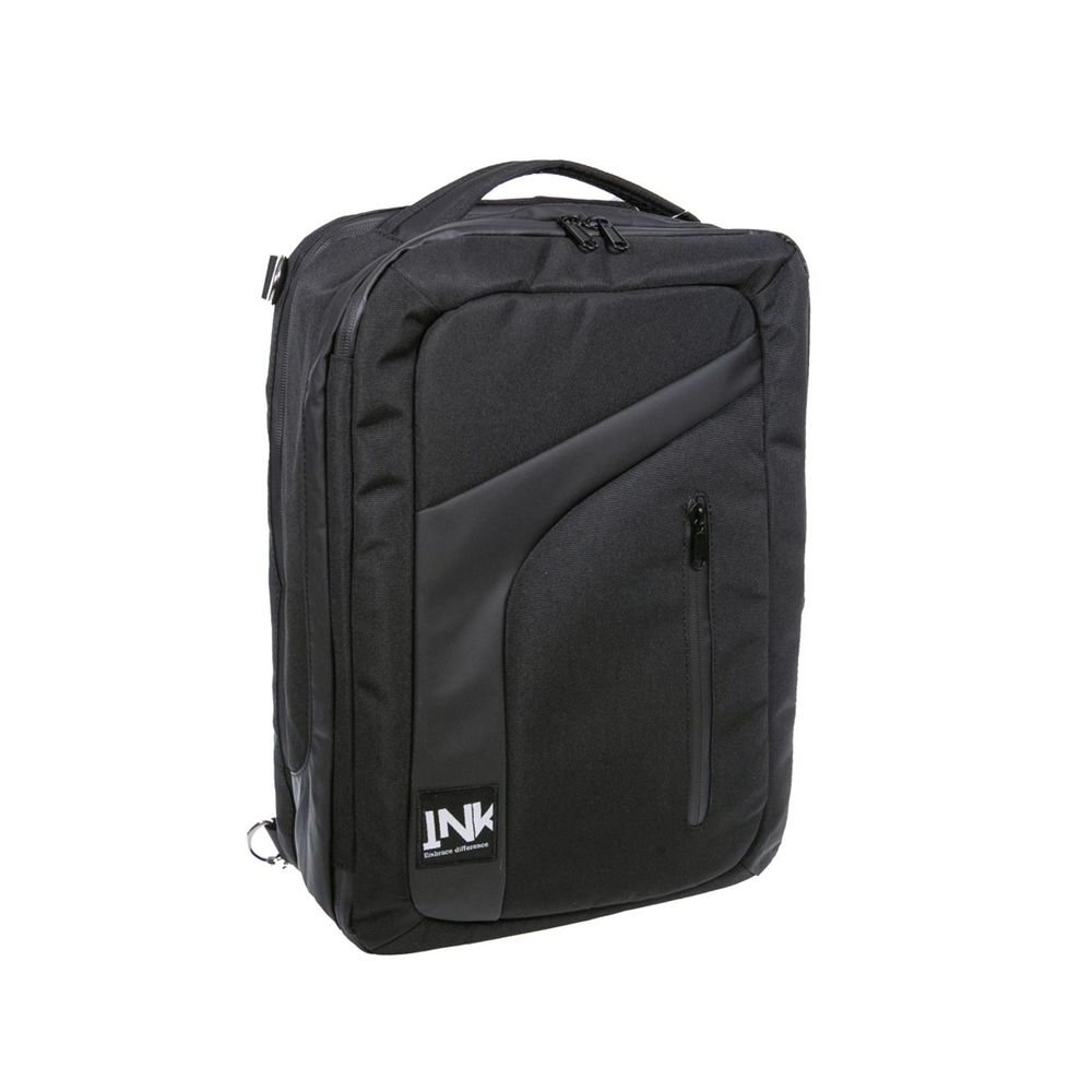 Τσάντα πλάτης ΙΝΚ μαύρη. Κατάλληλη για την μεταφορά βιβλίων, εγγράφων και φορητού υπολογιστή. Διαθέτει 3 θήκες με φερμουάρ. Επιπλέον διαθέτει ιμάντα μεταφοράς, κάλυμμα ιμάντων πλάτης και υποδοχή για στερέωση σε λαβή μεταφοράς βαλίτσας.