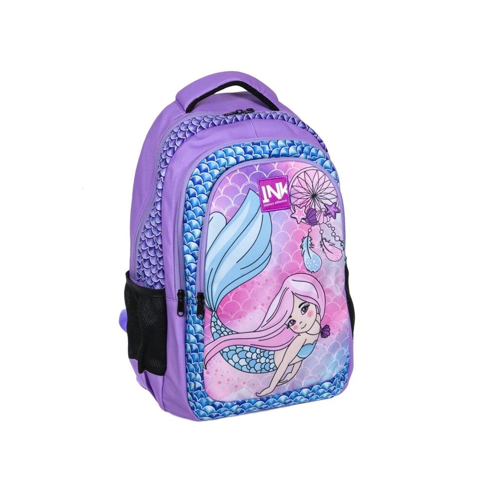 Τσάντα πλάτης πολυθεσιακή γοργόνα.Διαθέτει 3 θέσεις με διπλό φερμουάρ και δύο πλαϊνές θήκες για παγούρι ή/και ομπρέλα.Ενισχυμένη πλάτη και ιμάντες που αυξομειώνονται για καλύτερη άνεση και προσαρμογή.