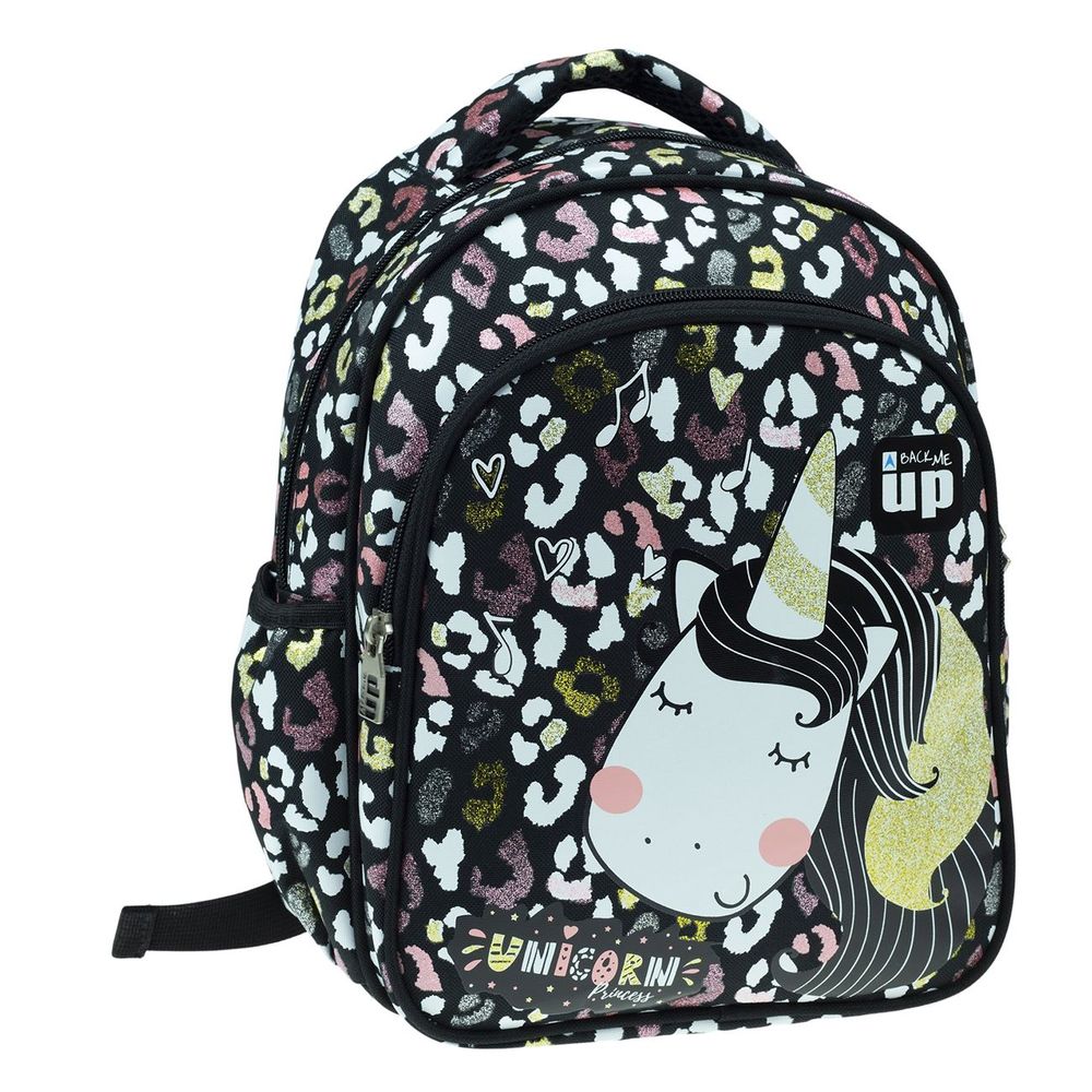 Η τσάντα πλάτης Unicorn Princess διαθέτη, 1 κεντρική θέση, μία επιπλέον μπροστινή, πλαϊνές θήκες για παγούρια και ενισχυμένους ιμάντες πλάτης.