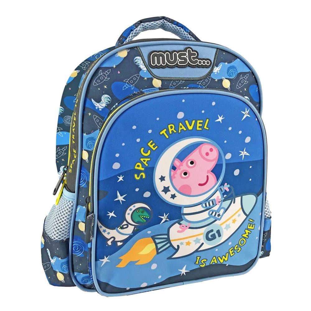 Η Σχολική Τσάντα Πλάτης Νηπίου George Pig Space Travel Must διαθέτει 2 ευρύχωρες θήκες για τα βιβλία, τα τετράδια, την κασετίνα και όλα τα απαραίτητα είδη γραφής για το σχολείο. Επιπλέον διαθέτει, πλαϊνή θήκη για παγούρι με ανθεκτικό δίχτυ, Ενισχυμένη λαβή για άνετο κράτημα, ανθεκτικά φερμουάρ, ετικέτα στοιχείων και μπρελόκ.
