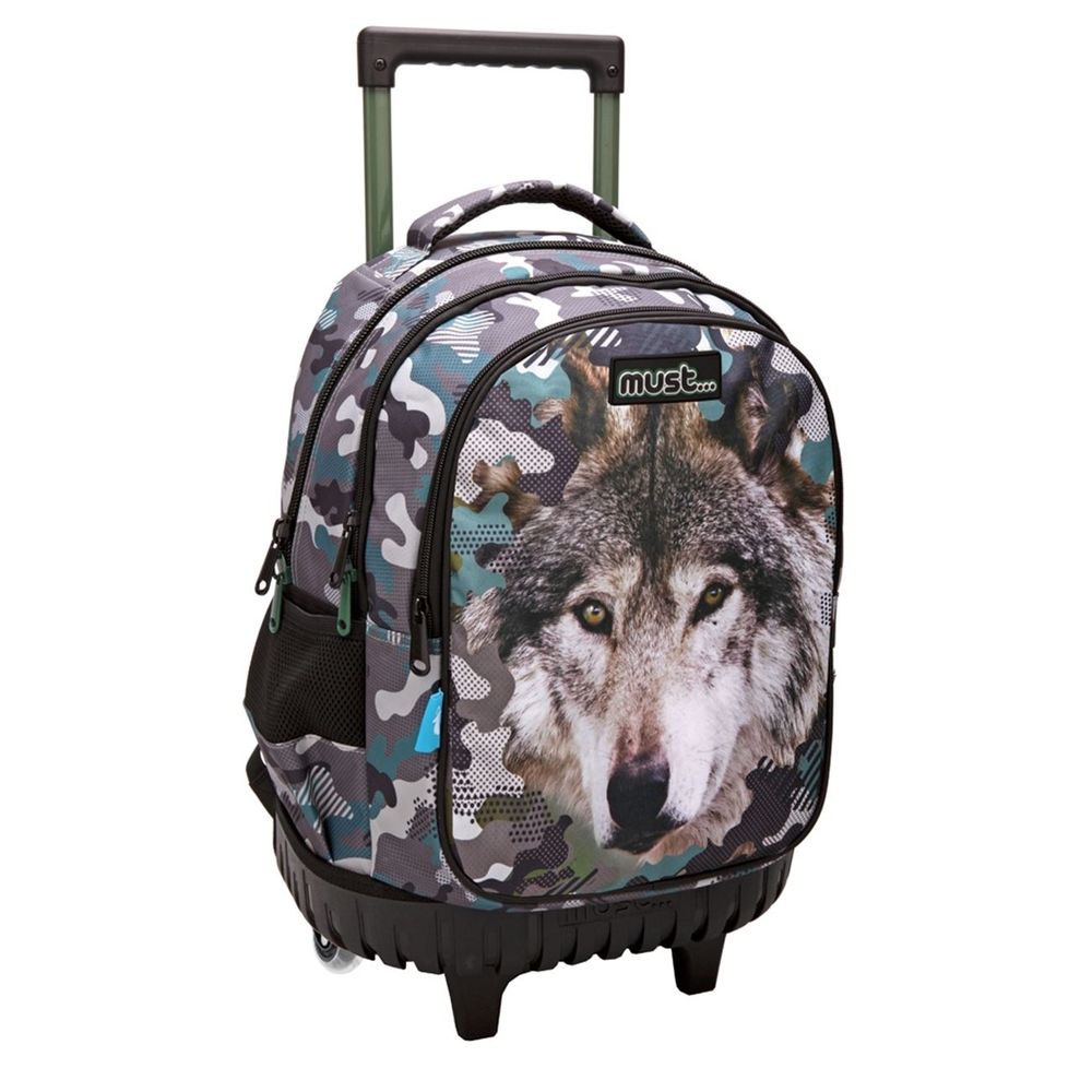 Μια ξεχωριστή Σχολική Τσάντα Τρόλεϊ Δημοτικού Animal Planet Λύκος με την ποιότητα Must που συνδυάζει σακίδιο πλάτης και τρόλεϊ μαζί. Ιδανική για το μαθητή που θέλει μια πρακτική και ανθεκτική σχολική τσάντα με εργονομικό σχεδιασμό για ασφαλή, άνετη και εύκολη μεταφορά όλων των απαραίτητων σχολικών ειδών στο σχολείο.