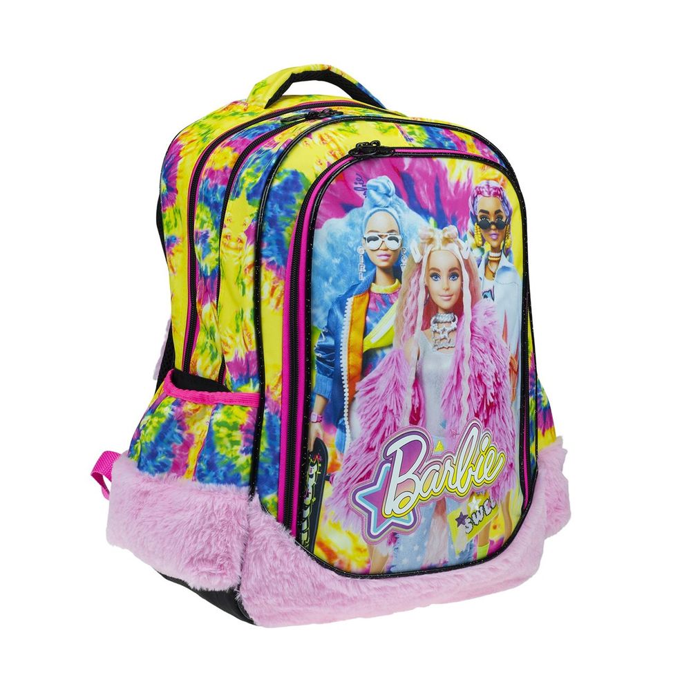 Σχολική τσάντα πλάτης οβάλ δημοτικού Barbie Extra ιδανική για κάθε μαθητή με μεγαλους χώρους αποθήκευσης. Διαθέτει δύο κεντρικές θέσεις και μία επιπλέον μπροστινή, με ανατομική πλάτη και πλαϊνές θήκες για παγούρια.\n