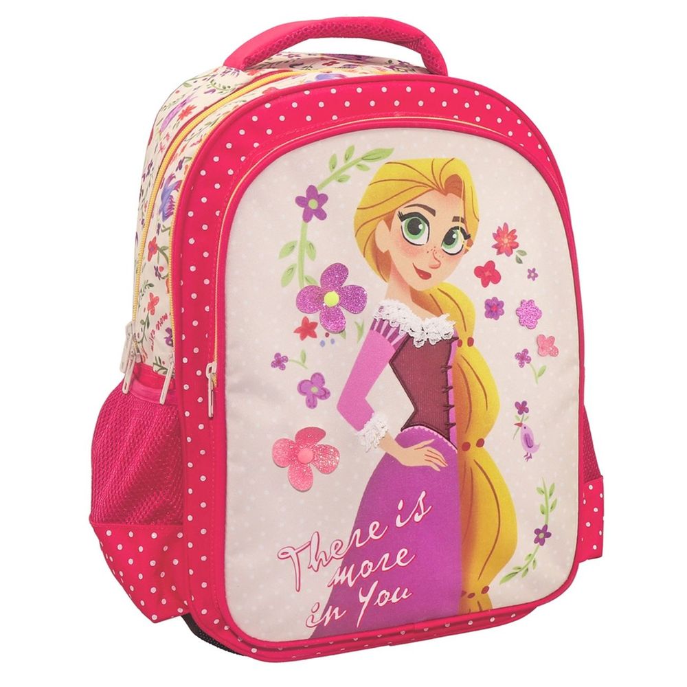 Η Σχολική Τσάντα Πλάτης Δημοτικού Disney Tangled There Is More In You με 3 ευρύχωρες θήκες, εξασφαλίζει την καθημερινή ασφαλή, άνετη και εύκολη μεταφορά όλων των απαραίτητων σχολικών ειδών. Διαθέτει ανατομική πλάτη με ενισχυμένους και ανακλαστικούς ιμάντες στο πίσω μέρος για την ορθότερη στάση του σώματος, πλαϊνή θήκη για παγούρι με ανθεκτικό διχτάκι, ενισχυμένη λαβή για άνετο κράτημα, ενισχυμένο πάτο για έξτρα προστασία των σχολικών ειδών και ετικέτα στοιχείων.