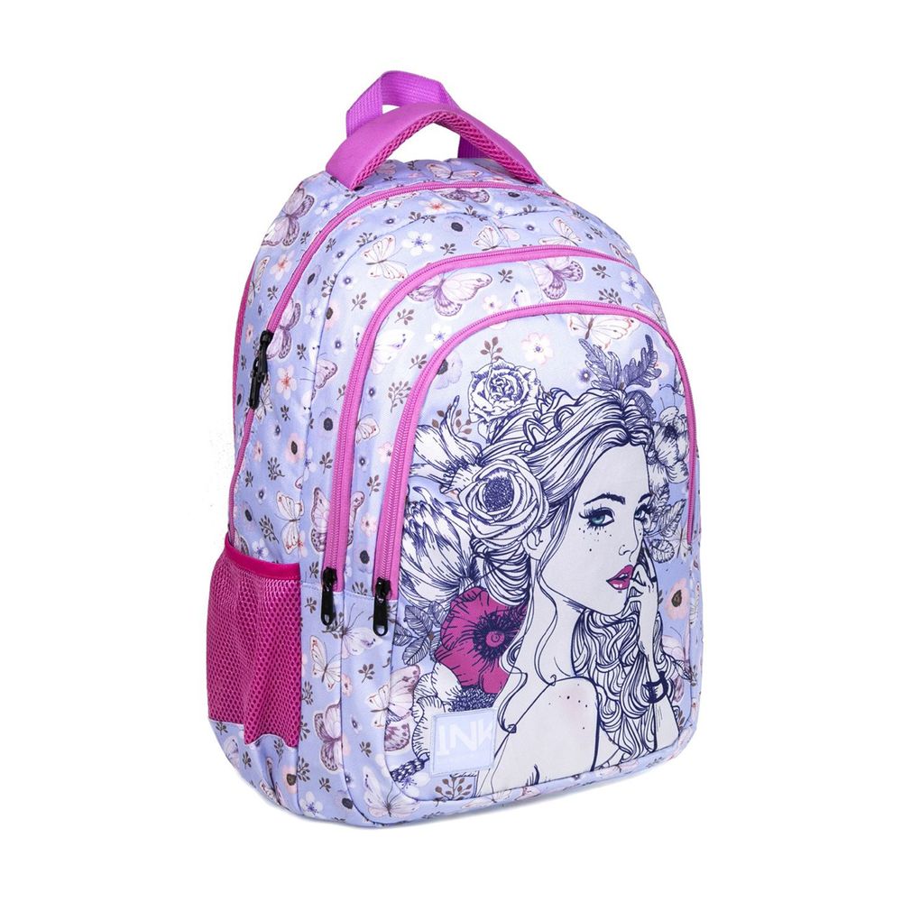 Τσάντα πλάτης με 3 θέσεις, διπλό φερμουάρ και δύο πλαϊνές θήκες για παγούρι ή και ομπρέλα. Με ενισχυμένη πλάτη και ιμάντες που αυξομειώνονται για καλύτερη άνεση και προσαρμογή.