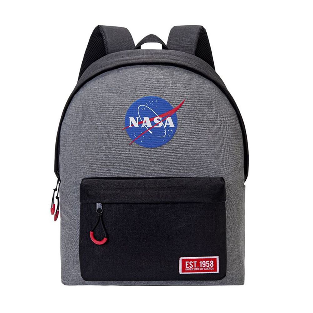 Κομψή σχολική τσάντα πλάτης NASA με διακριτικό γκρι χρώμα, ιδανική για μαθητές γυμνασίου και λυκείου. Με γενναιόδωρες διαστάσεις 43.5 x 32 x 14 cm, προσφέρει άφθονο χώρο για όλα τα σχολικά είδη. Ανακάλυψε την απόλυτη διαστημική έμπνευση στην καθημερινή σου μετακίνηση.
