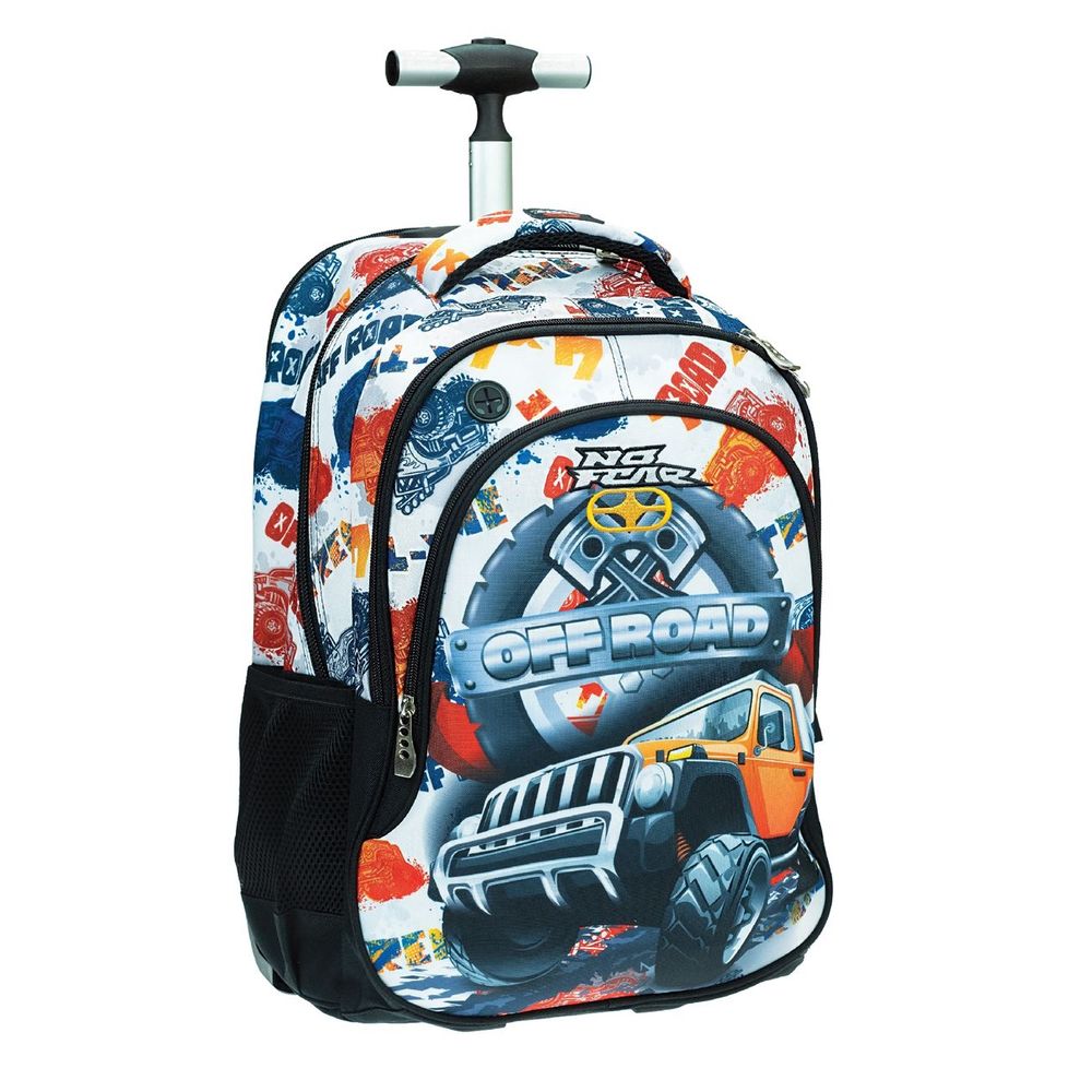 Τσάντα με δύο κεντρικές θέσεις και μία επιπλέον μπροστινή με εσωτερική θήκη οργάνωσης. Διαθέτει ενισχυμένο μονό μηχανισμό μεταφοράς με 2 θέσεις προσαρμογής, ενισχυμένους ιμάντες πλάτης με αντανακλαστικά ρέλια που κρύβονται σε ειδική θήκη με φερμουάρ όταν η τσάντα χρησιμοποιείται σαν τρόλεϊ, πλαϊνές θήκες για παγούρια, προστασία για τα ροδάκια όταν η τσάντα χρησιμοποιείται σαν σακίδιο, δίοδο για ακουστικά, και επένδυση με τυπωμένη φόδρα.