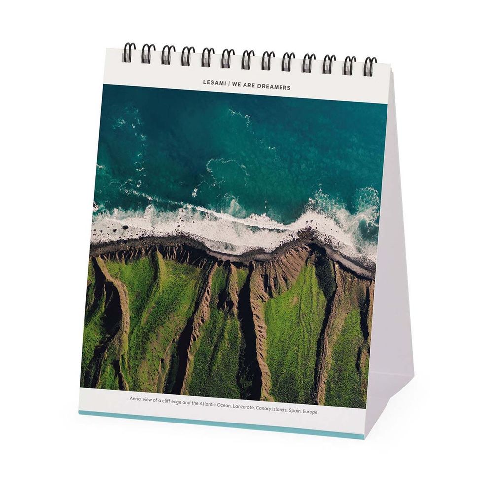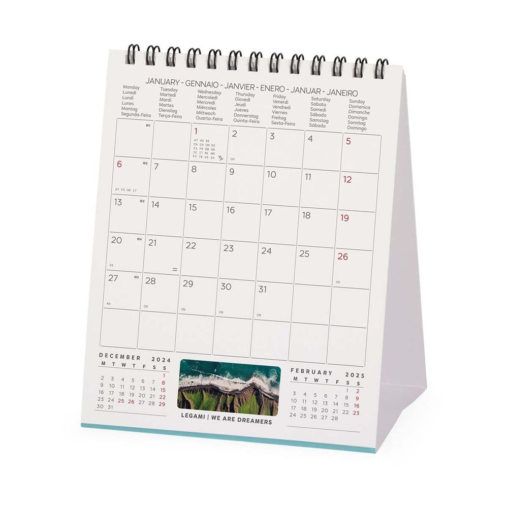 Ζωντάνεψε το γραφείο σου με το επιτραπέζιο ημερολόγιο Legami! Σε compact μέγεθος 12 x 14.5 cm, διαθέτει 12 μοναδικές φωτογραφίες – μία για κάθε μήνα – και πληροφορίες σε 6 γλώσσες (Αγγλικά, Ιταλικά, Γαλλικά, Ισπανικά, Γερμανικά, Πορτογαλικά). Απόλαυσε την πρακτικότητα με εμφάνιση του προηγούμενου και επόμενου μήνα σε κάθε σελίδα και αρίθμηση εβδομάδων. Οργάνωσε τη χρονιά σου με στυλ και άφησε την καθημερινότητά σου να γίνει πιο δημιουργική!