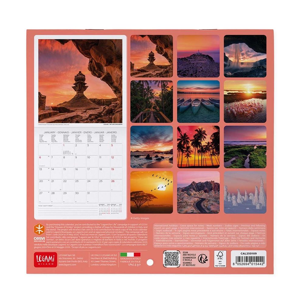 Οργάνωσε τη χρονιά σου με στυλ με το Ημερολόγιο Τοίχου Legami 18 x 18 cm! Απόλαυσε 12 μοναδικές εικόνες, μια για κάθε μήνα, και σημείωσε τις σκέψεις ή τις υποχρεώσεις σου στον έξτρα χώρο σημειώσεων. Με 6 γλώσσες (English, Italian, French, Spanish, German, Portuguese) και την εμφάνιση προηγούμενου και επόμενου μήνα σε κάθε σελίδα, θα έχεις πάντα τον έλεγχο. Εύχρηστο και πρακτικό, με αριθμημένες εβδομάδες για τέλεια οργάνωση!