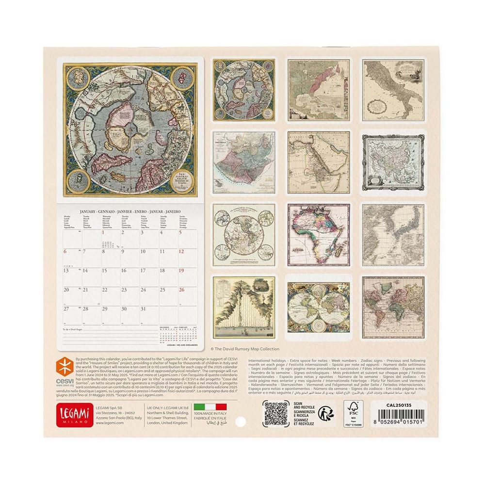 Legami Ημερολόγιο Τοίχου 2025 18x18cm Vintage Maps