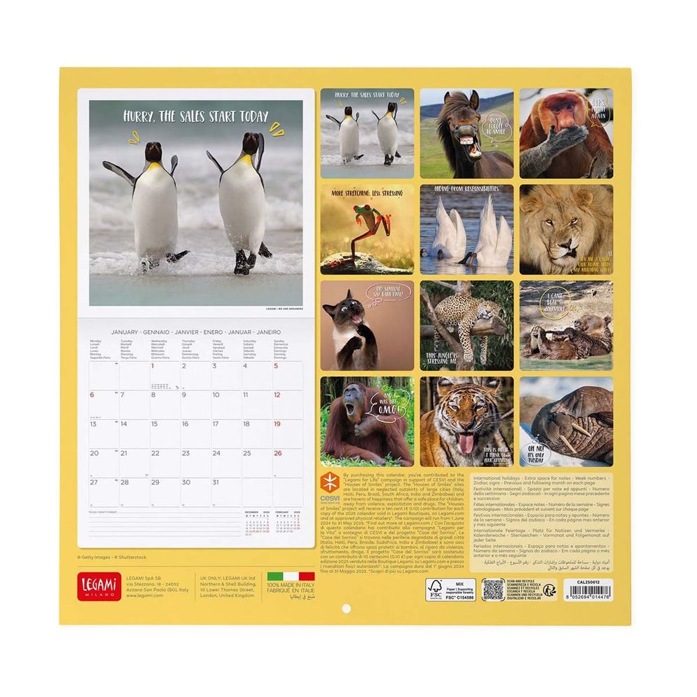 Οργάνωσε τη χρονιά σου με στυλ με το Ημερολόγιο Τοίχου Legami 30 x 29 cm! Απόλαυσε 12 μοναδικές εικόνες, μια για κάθε μήνα, και σημείωσε τις σκέψεις ή τις υποχρεώσεις σου στον έξτρα χώρο σημειώσεων. Με 6 γλώσσες (English, Italian, French, Spanish, German, Portuguese) και την εμφάνιση προηγούμενου και επόμενου μήνα σε κάθε σελίδα, θα έχεις πάντα τον έλεγχο. Εύχρηστο και πρακτικό, με αριθμημένες εβδομάδες για τέλεια οργάνωση!