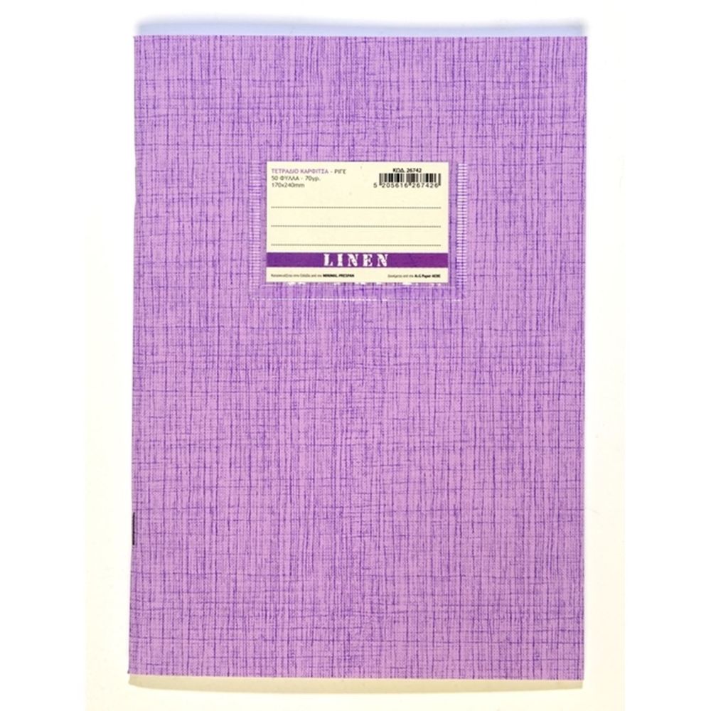 A&G Paper Πλαστικό Linen 17 x 24 50Φ Ριγέ Λιλά Τετράδιο