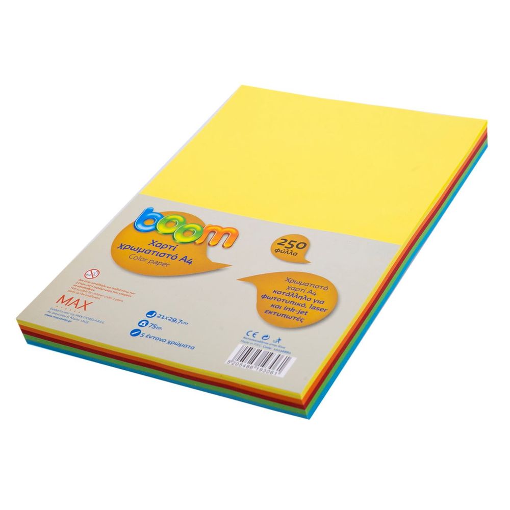 Boom A4 75gr Έντονα Χρώματα 250Φ Φωτοαντιγραφικό Χαρτί