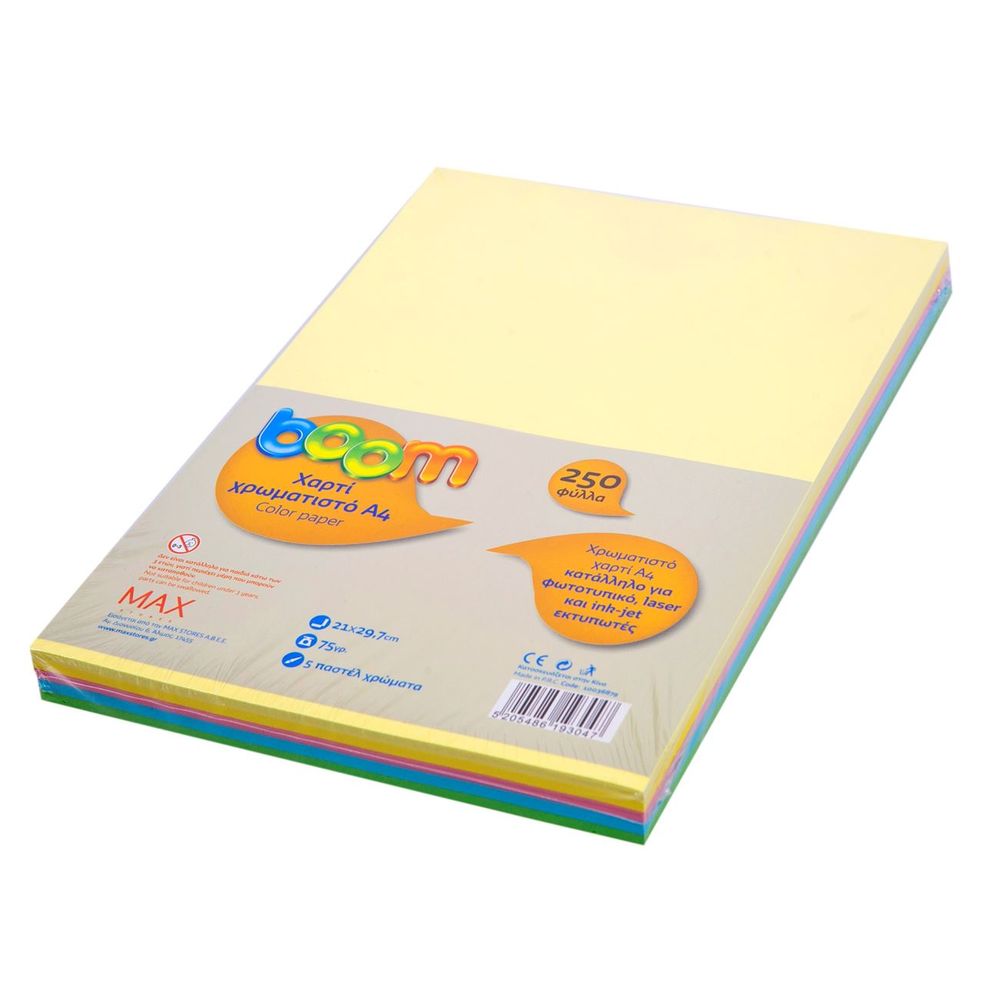 Boom A4 75gr Παστέλ Χρώματα 250Φ Χαρτί